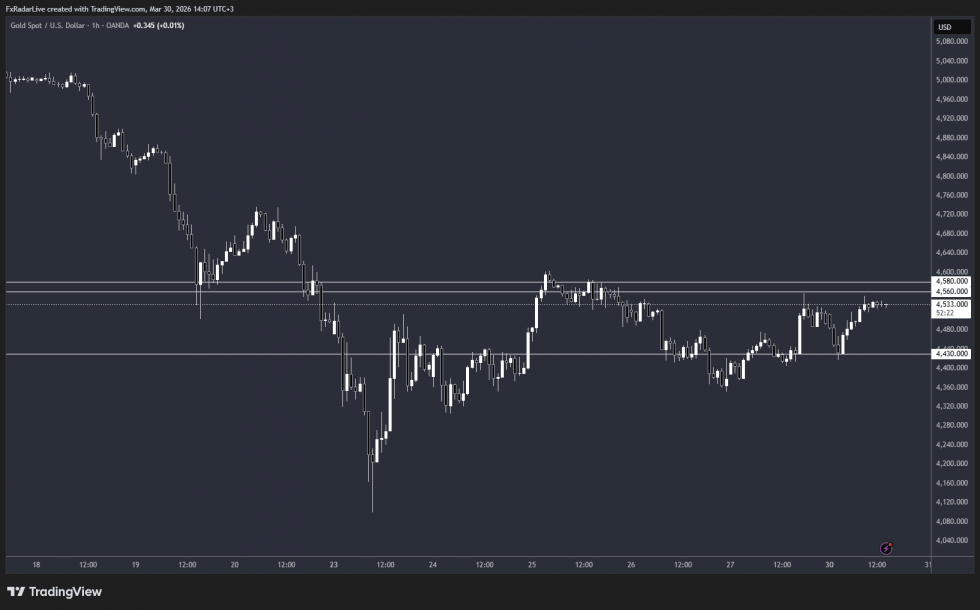 XAU/USD is currently trading at 4,532.09, up about 38.4 dollars on the day (+0.85 percent) from a previous close near 4,493.69. The intraday bias is mildly bullish as gold stabilizes above 4,500 amid safe haven demand linked to the ongoing Iran war, softer risk sentiment, and a steady to slightly firmer US dollar. Key drivers over the next 24 hours are Middle East geopolitics, today’s US Fed communication (Powell and Williams), moves in US yields, and eurozone and German inflation data feeding into rate cut expectations.
