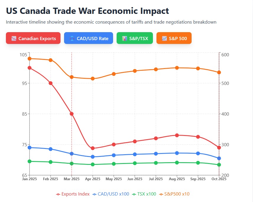 The termination of trade talks introduces substantial uncertainty into North American markets. During previous trade tensions in March 2025, the S&P 500 fell over 10 percent in two days following Trump's tariff announcements, marking its worst week since the COVID-19 recession of 2020. Canadian and Mexican markets demonstrated greater resilience during that period, with Canada's benchmark S&P/TSX maintaining relatively stable levels.