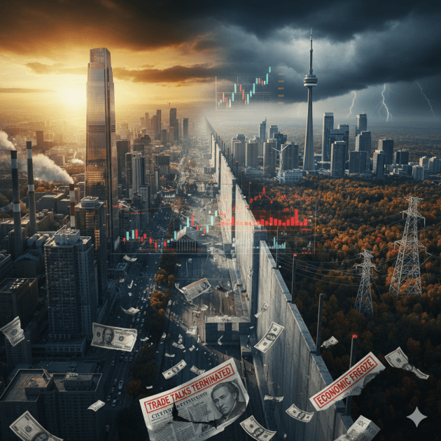 In a dramatic escalation of bilateral tensions, President Donald Trump terminated all trade negotiations with Canada on Thursday evening, citing what he called a "fraudulent" advertisement featuring former President Ronald Reagan's voice criticizing tariffs. The abrupt decision threatens to destabilize the $2.5 billion daily trade relationship between the world's most integrated economies and sends shockwaves through financial markets on both sides of the border.
